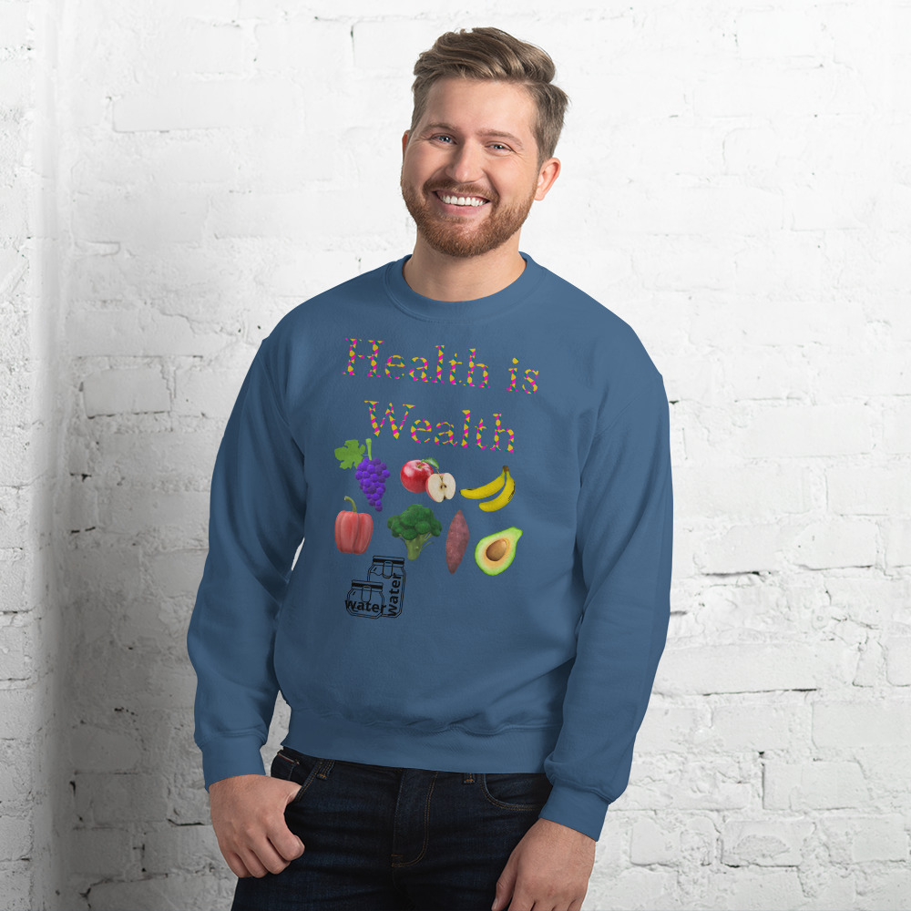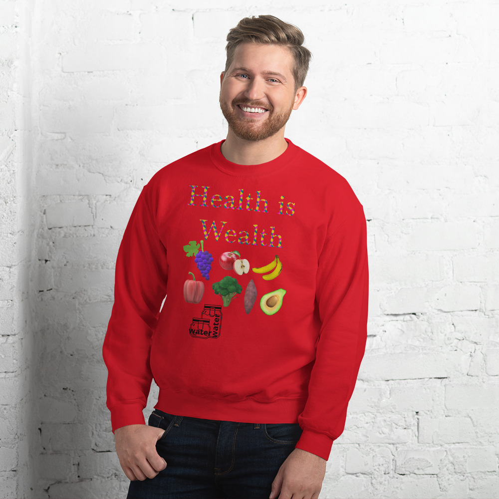 A sturdy and warm sweatshirt bound to keep you warm in the colder months. Wear this to promote healthy eating. N.B. Please rinse garment with water and your favorite fabric softener, then put to dry before wearing.