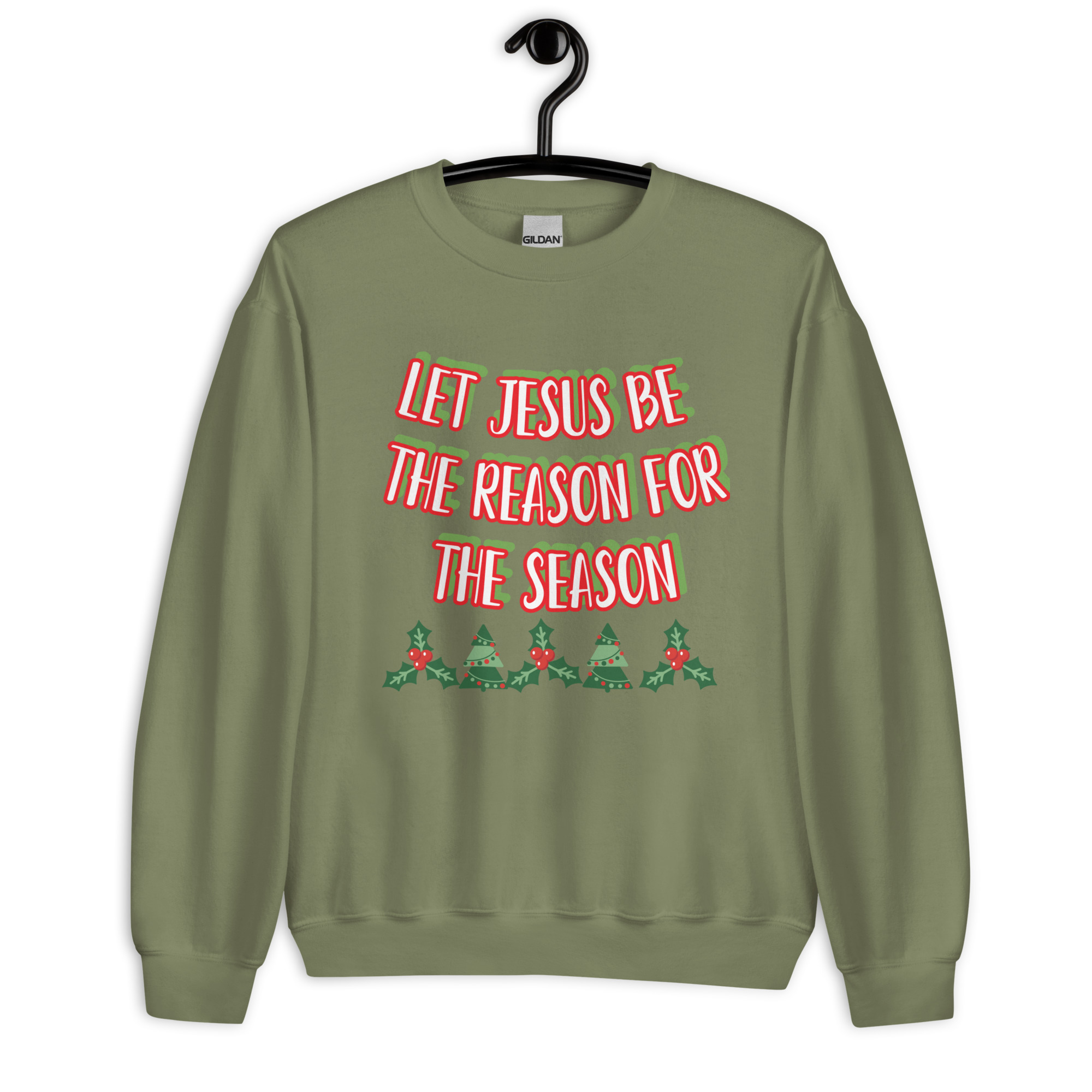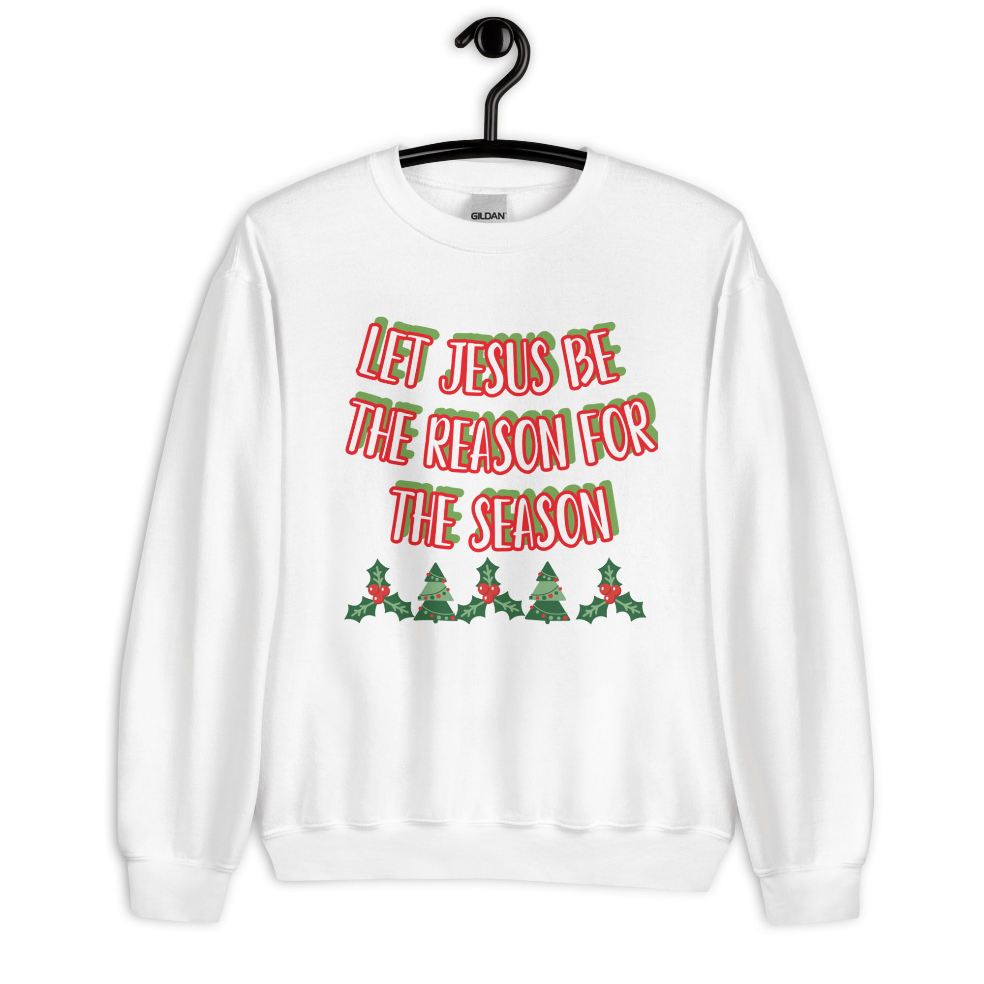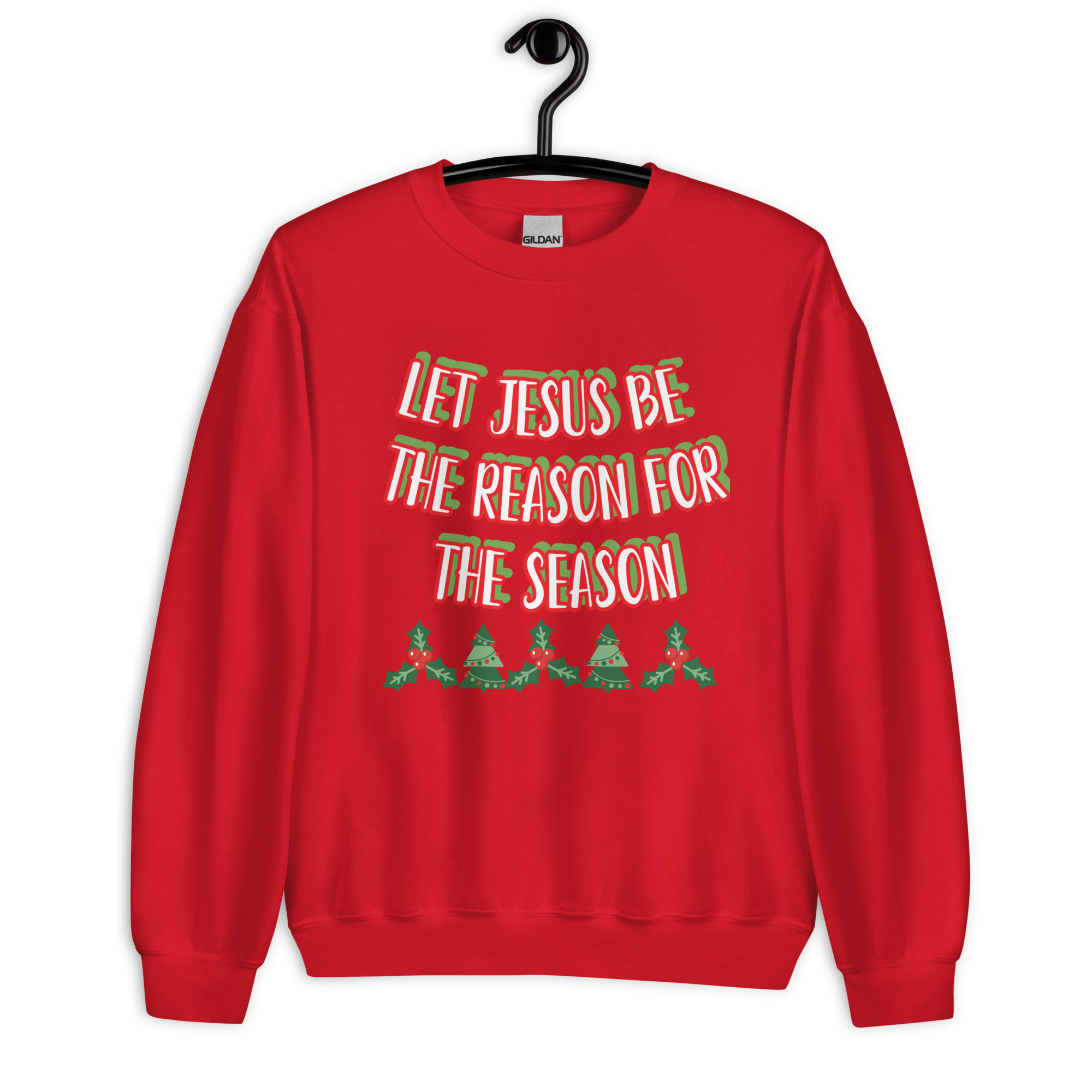 A sturdy and warm sweatshirt bound to keep you warm in the colder months. A pre-shrunk, classic fit sweater that’s made with air-jet spun yarn for a soft feel and reduced pilling. Let Jesus be the reason for this season. Please rinse garment with water and fabric softener, then place to dry before wearing.